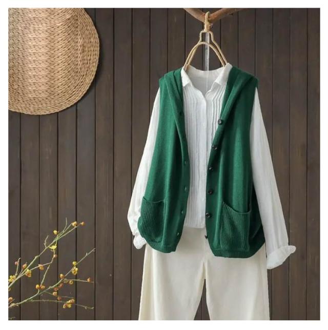 | フード付きレディースベスト ゆったりとした美シルエット、レイヤードコーデを楽しむアイテム。 柔らかく程よい厚みの生地、これからの季節はもちろん春と秋にご着用頂けます。 シンプルで着まわしに使いやすく、様々なシーンで大活躍 | |