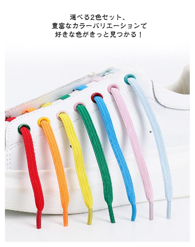 | カラーを選べる2足セット フラットなバックルがスタイリッシュな結ばない靴紐。 フラットな留め具と靴ひもがの色が統一でスタイリッシュでおしゃれ! 伸縮性のある平ゴムを採用、スッと履けるのにしっかりとフィットして快適な履き心地を実現。 選べる2色セット、豊富なカラーバリエーションで好きな色がきっと見つかる! | |