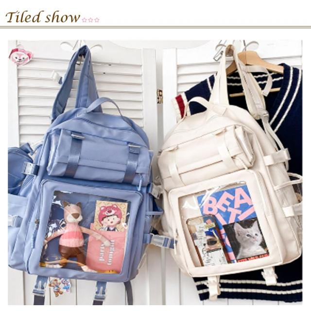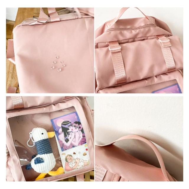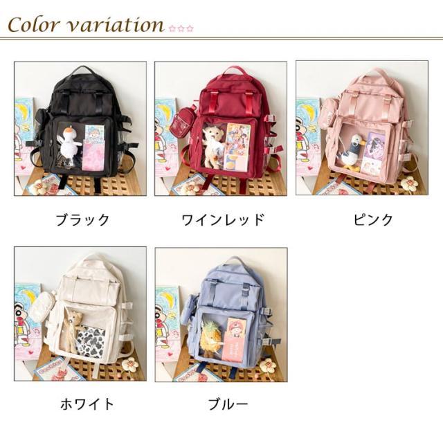 | 痛バ リュック 大容量 クリアの小窓部分にお気に入りの写真や小物を入れるだけで、遊び心溢れるリュックに アイドルやアニメの推しイベントで大活躍あんスタやツイステなどの缶バッジをたくさんつけてお出かけしましょう | |