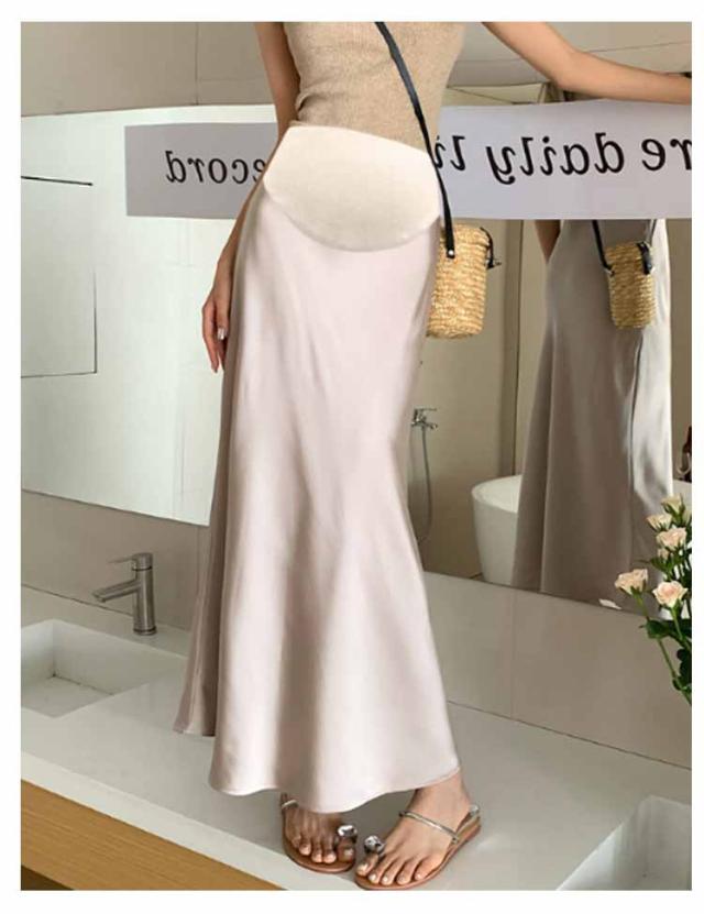 ロングスカート 接触冷感 産前 レディース サテンスカート aライン ロング丈 妊婦服 服 産後 マタニティ タイト サテン とろみ 妊婦 妊娠 ボトムス フレアスカート ウエストゴム マキシ サテンスカート きれいめ 落ち感 光沢感 ボトムス オフィス 通勤 春 夏 秋