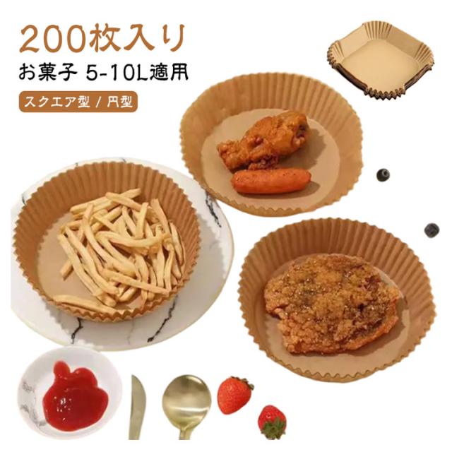 200枚入り エアフライヤー 四角形 防水 油紙 天ぷら敷紙 キッチン専用 円型 エアフライヤー専用紙 お菓子 クッキングシート クッキングシート 5-10L適用 スクエア型 耐油 220℃耐熱 揚げ物 使い捨て
