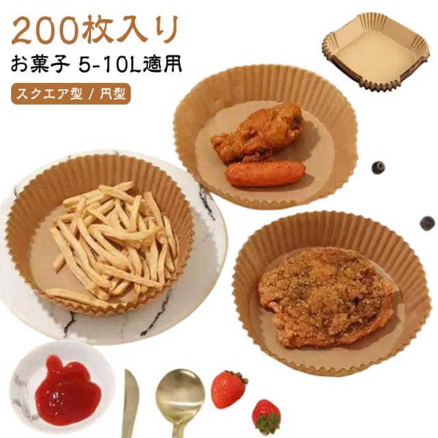 油紙 天ぷら敷紙 エアフライヤー スクエア型 防水 キッチン専用 スクエア型 円型 エアフライヤー専用紙 200枚入り クッキングシート クッキングシート 5-10L適用 お菓子 耐油 220℃耐熱 揚げ物 使い捨て