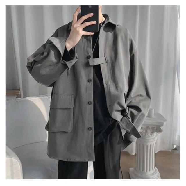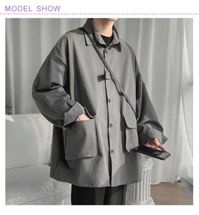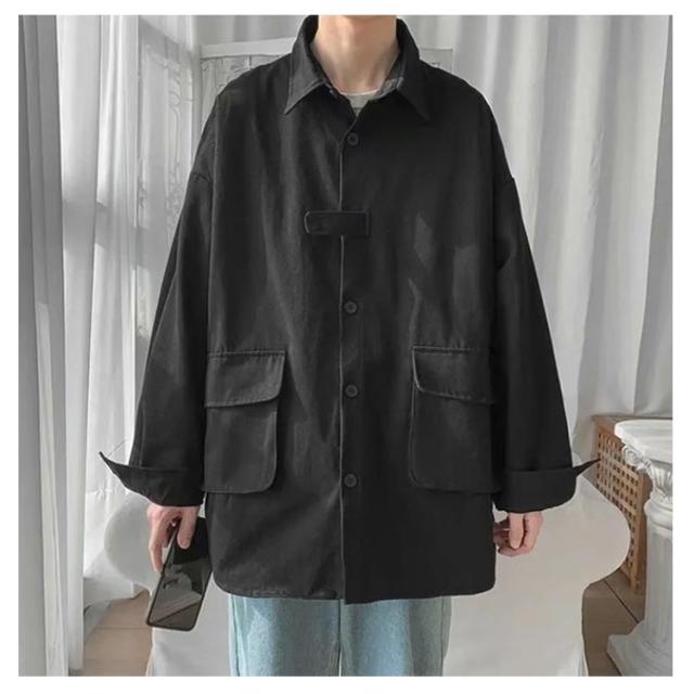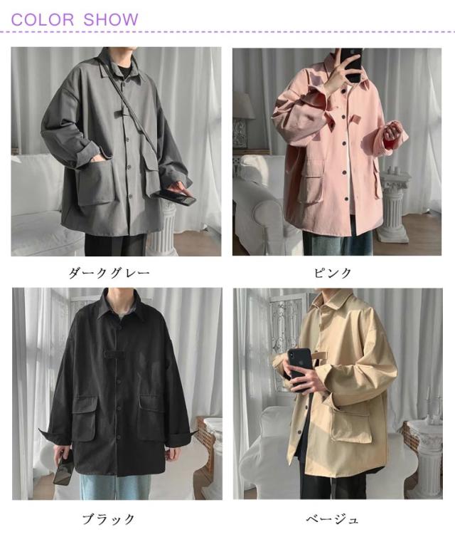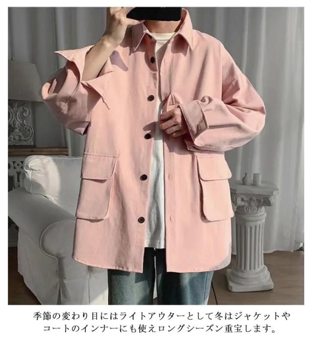 メンズ ルーズ トップス シャツジャケット カジュアルシャツ 大きいサイズ ジャケット シャツジャケット 無地 羽織 ゆったり おしゃれ アウター 春秋 通勤 通学 重ね着 体型カバー