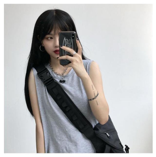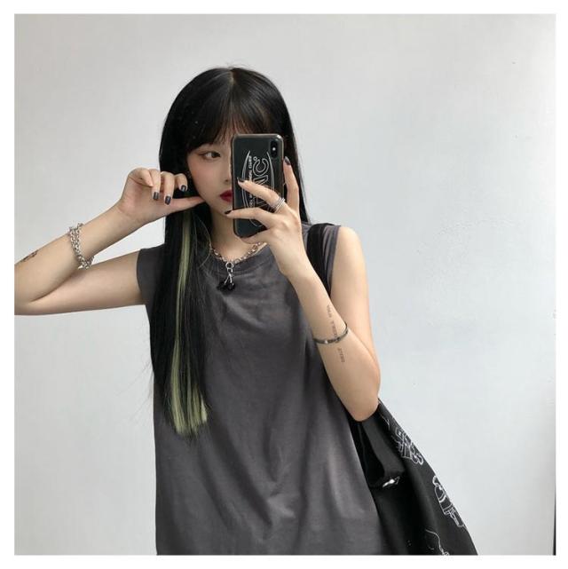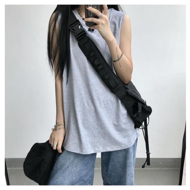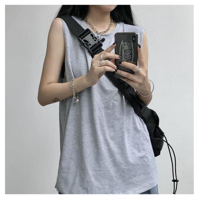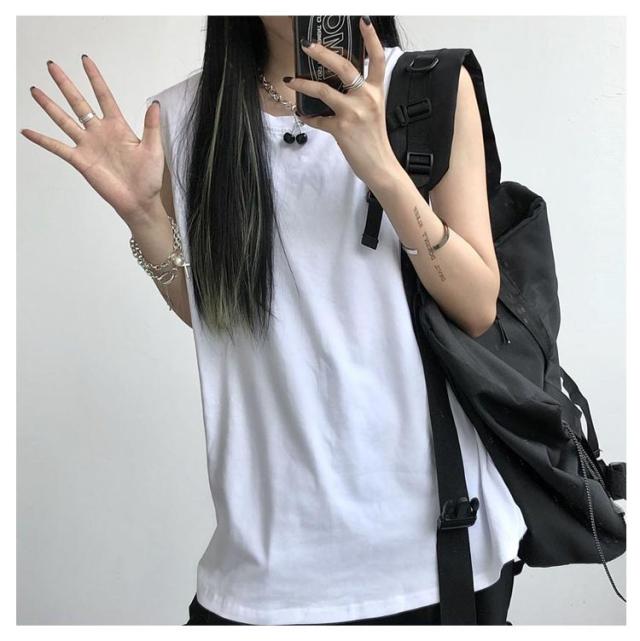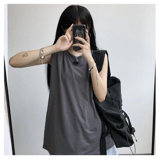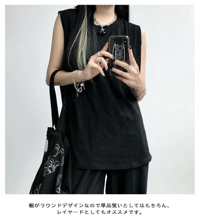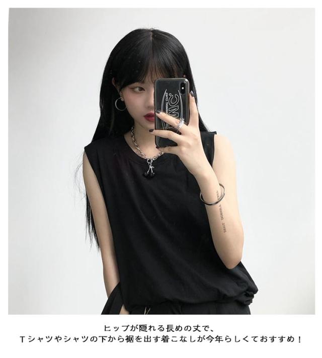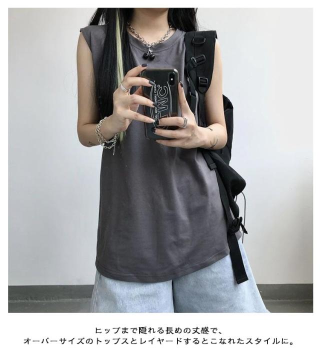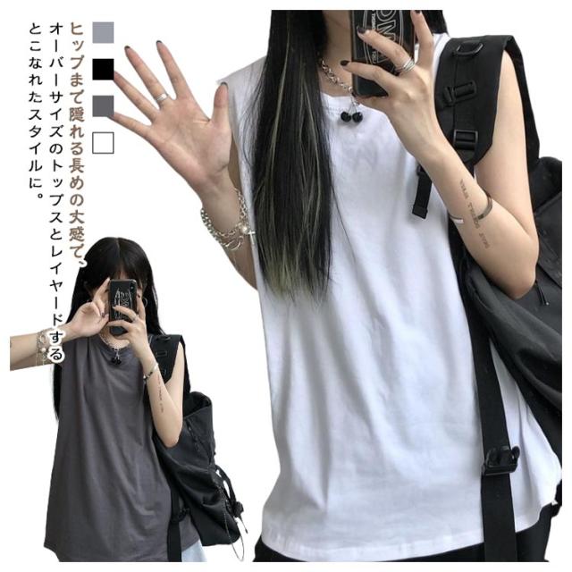 レディース タンクトップ お腹カバー ノースリーブ ラウンドネック 重ね着 レイヤード Tシャツ トップス ゆったり ロング丈 体型カバー お尻カバー 着痩せ 柔らか 通気 涼しい カジュアル おしゃれ 日常