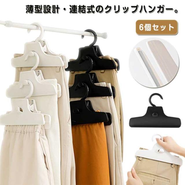 ボトムクリッパー 滑らない スカートハンガー スラックスハンガー ボトムクリッパー パンツハンガー 6個セット おしゃれ ズボン用 連結 省スペース すべらない ボトムハンガー 軽い 軽量 セット スリム 薄い ブラック