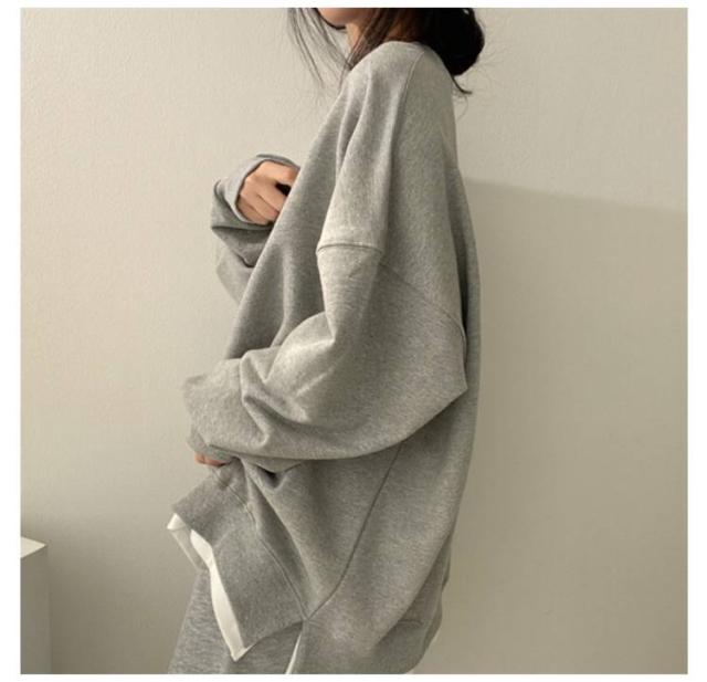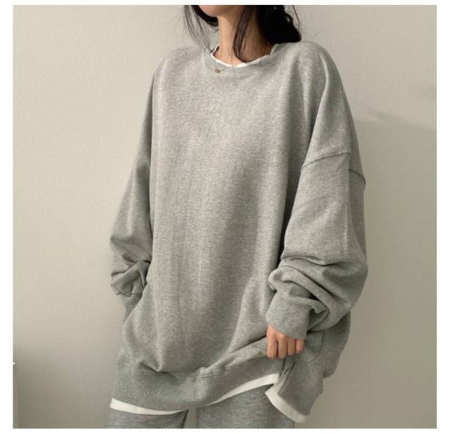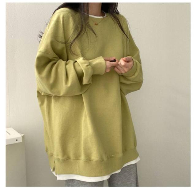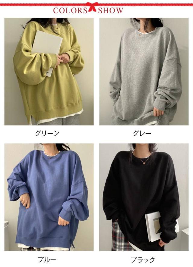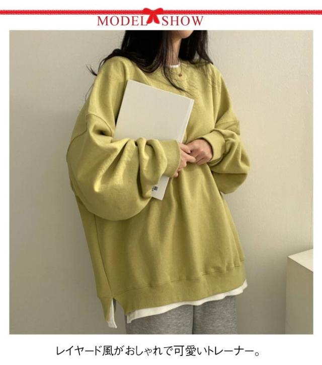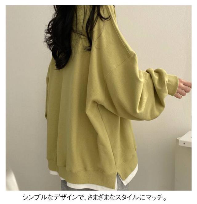 tシャツ トレーナー スウェット トレーナー ゆったり レイヤード レディース 大きサイズ 重ね着風 韓国風 トップス スリット入り ルーズ tシャツ 春服 秋服 無地 アウター