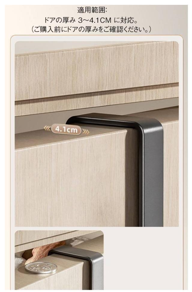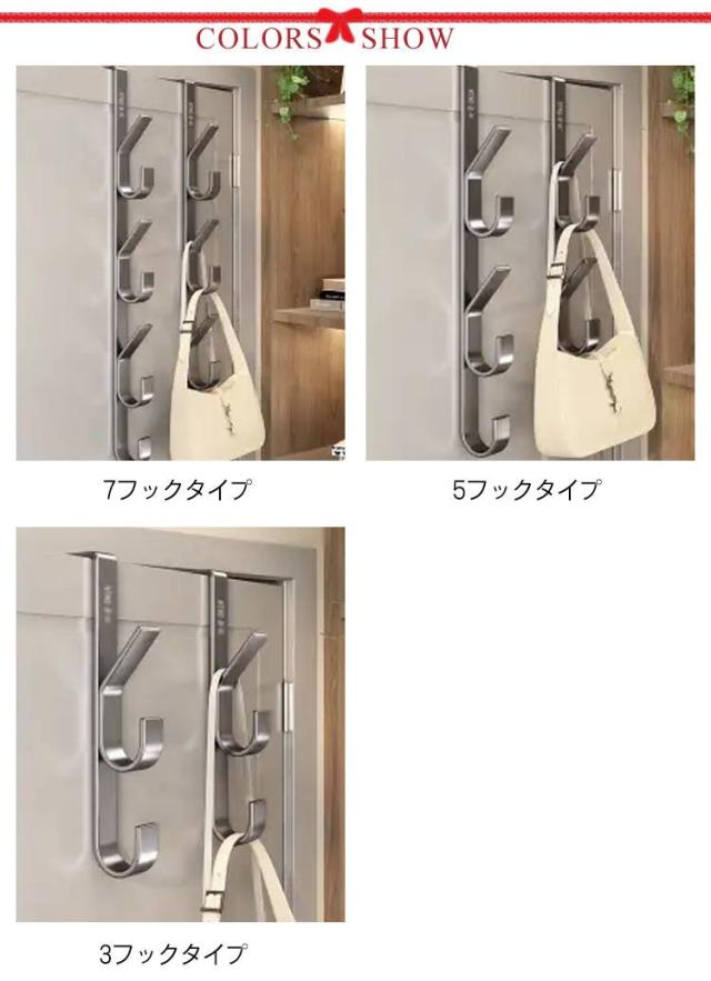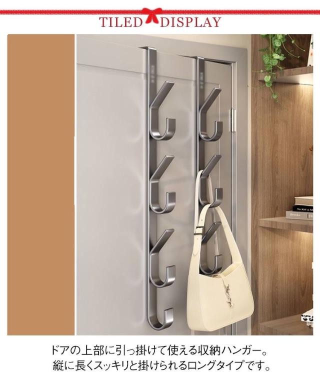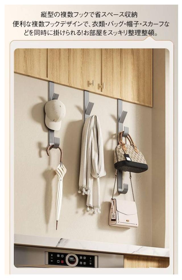 | ドアの上部に引っ掛けて使える収納ハンガー。 縦に長くスッキリと掛けられるロングタイプです。 穴あけ不要でドアを傷つけない 工具不要で、ドアにそのまま掛けるだけ!穴を開ける必要がなく、ドアを傷つけません。さまざまな厚さのドアに対応可能。 高品質の金属素材で丈夫&耐久性抜群 頑丈な金属製で、耐荷重性が高く、変形しにくい。長期間使用しても錆びにくい設計。 縦型の複数フックで省スペース収納 便利な複数フックデザインで、衣類・バッグ・帽子・スカーフなどを同時に掛けられる!お部屋をスッキリ整理整頓。 シンプル&スタイリッシュなデザイン モダンでシンプルなデザインと金属の質感が、どんなインテリアにも馴染む! 適用範囲: ドアの厚み 3〜4.1cm に対応。(ご購入前にドアの厚みをご確認ください。) | |