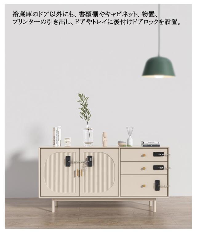 | ・ご家庭内の安全に!パスワード付きの冷蔵庫ドアロック。 ・こんな方におすすめ!子供や赤ちゃんの冷蔵庫からの盗み食いやいたずらを防ぎたい方、高齢者の方の冷蔵庫の開閉を防止するための認知症介護用品、ダイエット中の間食を防ぎたい方。 ・強力両面テープで、冷蔵庫やキャビネットのドアに簡単装着。両面テープで装着するので、ドリルやネジは不要で、取り付け・取り外しも簡単。 ・冷蔵庫のドア以外にも、書類棚やキャビネット、物置、プリンターの引き出し、ドアやトレイに後付けドアロックを設置。 | |