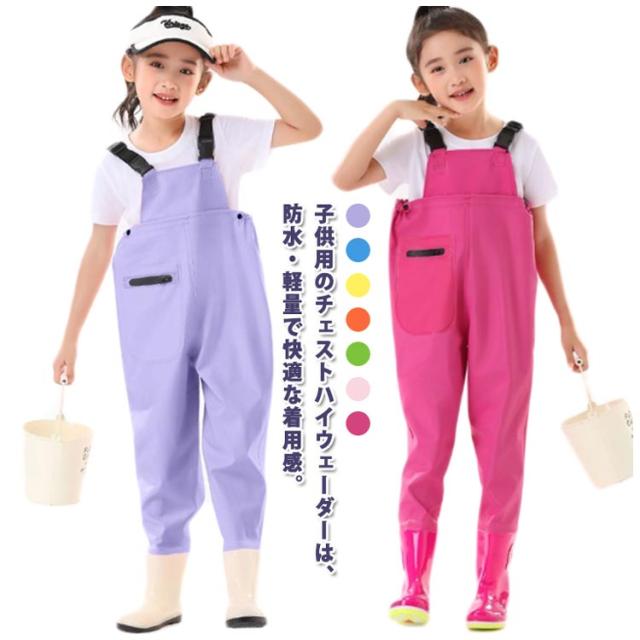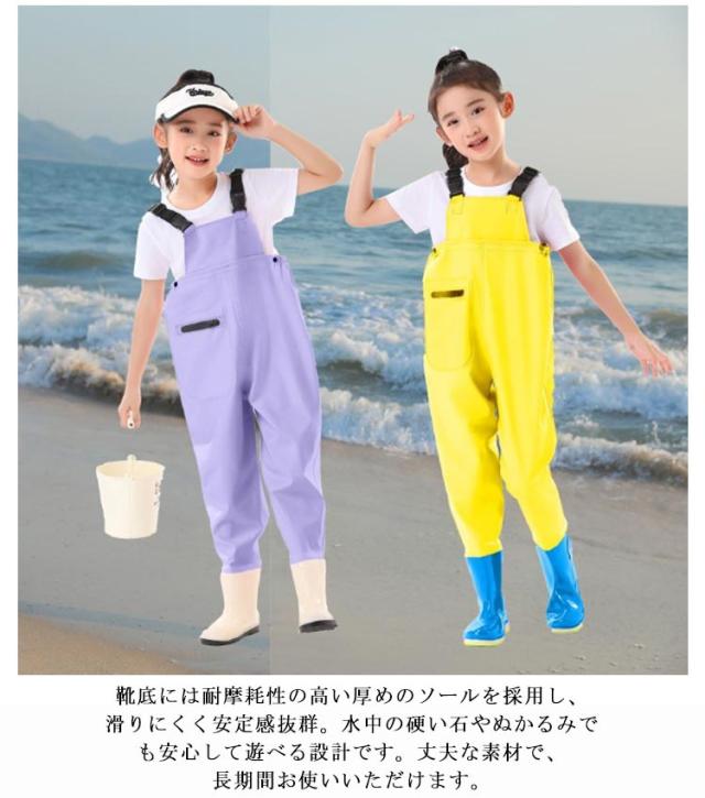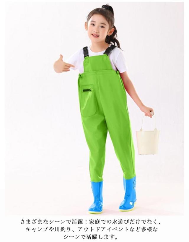 水遊び用 チェストハイウェーダー 海 ウェーダー 胴付き長靴 ブーツ付き 子供用 ウェーダー ウェーダー 防水 軽量 快適な着心地 耐摩耗性 女の子 男の子 レインパンツ お砂場着 水遊び 川 釣り 田んぼ 遊び プレイウェア 潮干狩り 雨の日 梅雨 長靴一体型