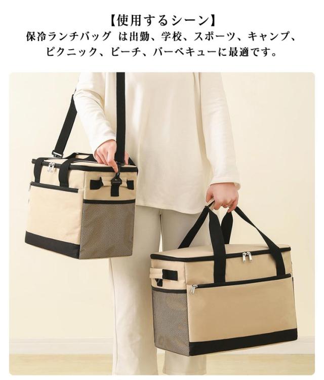 | 【大容量・多目的】大容量30L。実用性は高くて、 買い物、ピクニックするとき大活躍なバッグです。大容量の収納空間で、野菜、肉、果物を一時的に保存するに大活躍です。取り外し可能なショルダーストラップで複数の持ち方ができ、持ち運びも簡単です。ドリンク、ボトル、さらには傘を収納するための2つの側面メッシュポケットがあります。スマホ、その他の小物を入れるための深いフロントポケット。 【保温/保冷】季節を問わず、全部適用します。裏にはアルミ蒸着シートという断熱材を採用し、有効に空気流通を防ぎます。 【頑丈・折り畳み可能】耐久性と靭性を高めるために、加工されたオックスフォード布で作られています。バッグを取り外してバッグをフラットに折り畳むことで、バックパックや車のトランクに簡単に収納できます。手持ち、肩掛け両方出来るので便利です、手が自由になり快適です。 【使用するシーン】保冷ランチバッグ は出勤、学校、スポーツ、キャンプ、ピクニック、ビーチ、バーベキューに最適です。 | |