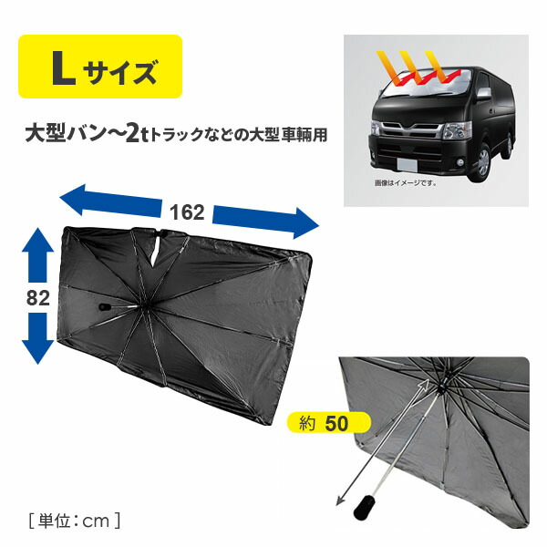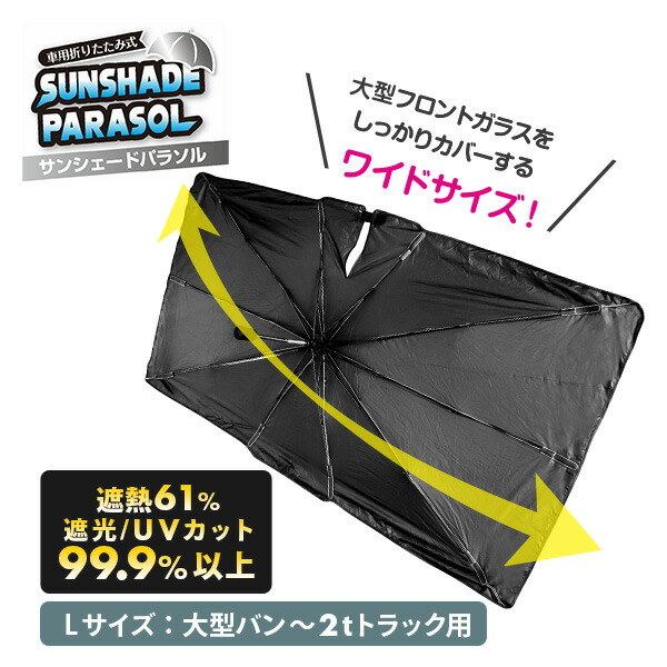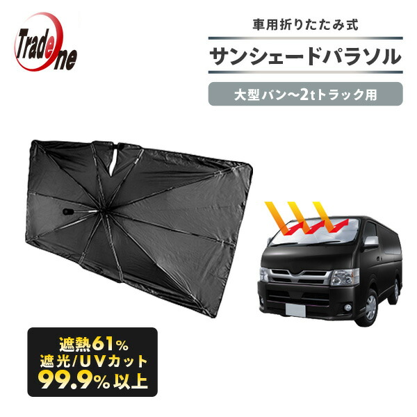 サンシェードパラソル 車用サンシェード Lサイズ 大型バン・ハイエース・2tトラック用 傘 折りたたみ 日除け フロントガラス 90114 自動車 トラック バン 遮光 遮熱 UV 紫外線カット カー用品 車中泊 コーティング トレードワン 【送料無料】