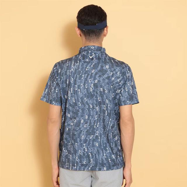 風通りが良く、体感温度が低く感じられる機能性がある 「かざあなメッシュ」 の半袖シャツです。配列したカラフルなCGロゴにウェーブを効かせた柄がプリントされ、今シーズンを象徴するアイテムになっています。肌面が凹凸感があるので、肌離れが良く着心地が良いアイテムです。
