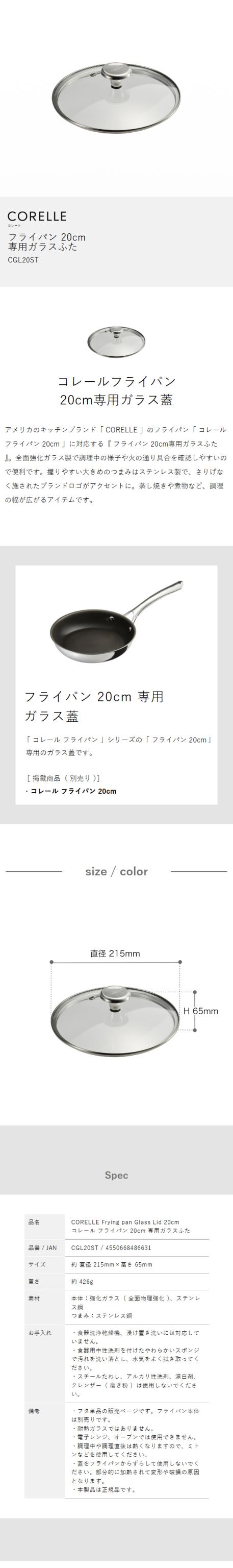 [ Corelle ガラスふた 20cm ]コレール フライパン 20cm 専用ふた 蓋 フタ ふた ガラス蓋 ガラスフタ 中身が見える フライパン用 フライパン蓋 フライパンカバー 調理器具 キッチン用品 強化ガラス キッチンツール 料理道具 シンプル CGL20ST