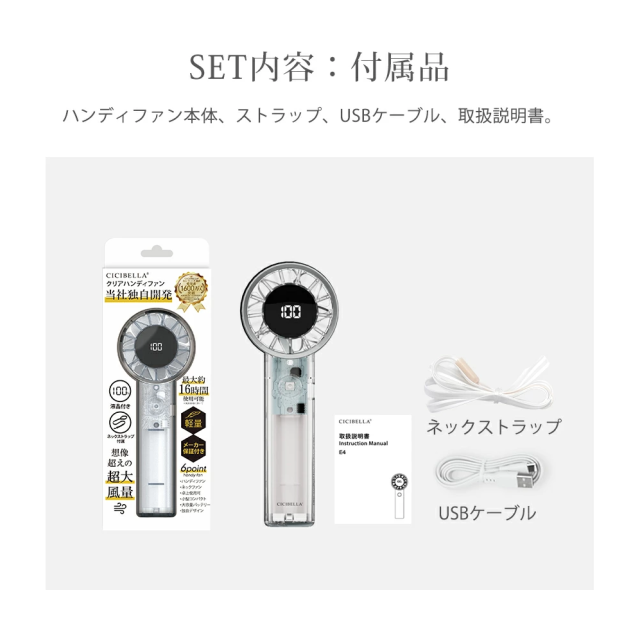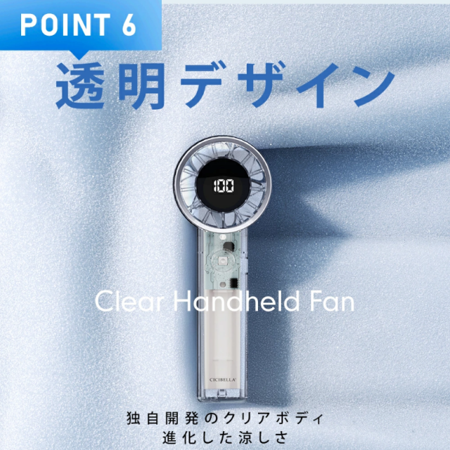 ■SNSで話題の小型扇風機!CICIBELLA独自開発の次世代クリアデザイン!