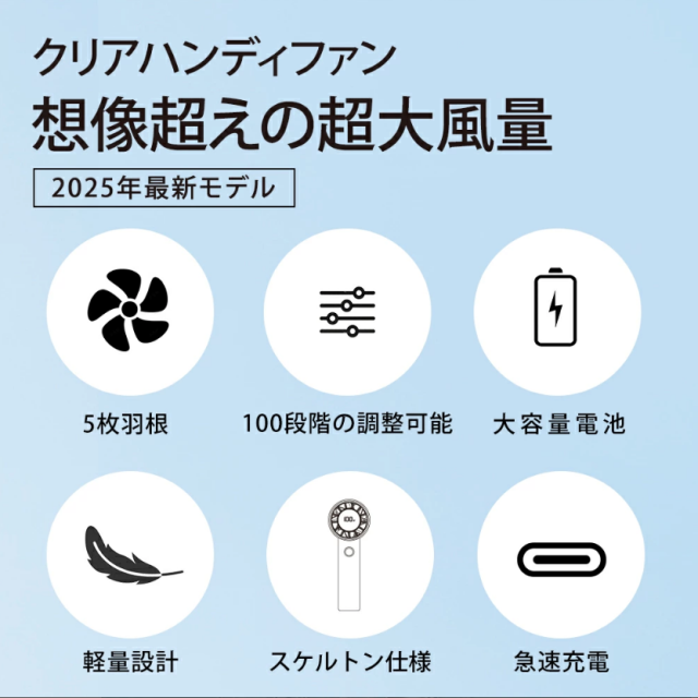 2025最新型★ハンディファン 大風量 シシベラ クリアハンディファン 1〜100段階 超軽量 ハンディファン ミニ扇風機 卓上扇風機 小型扇風機 携帯扇風機 Type-C対応 手持ち 卓上 小型 コンパクト 静音 長時間 おしゃれ 可愛い cicibella