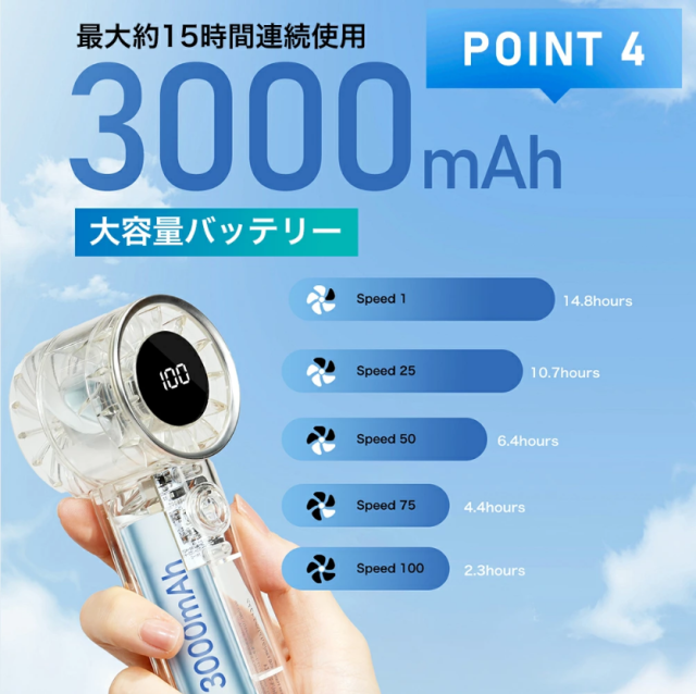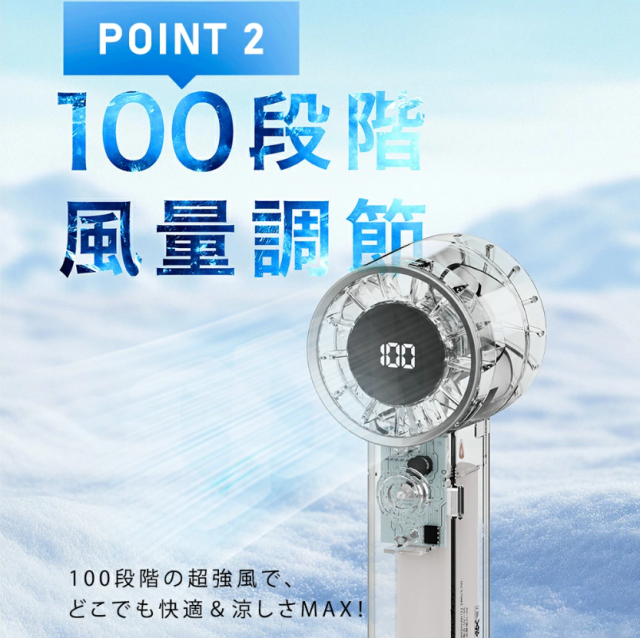 ■100段階調節可能なので通勤中や勤務中に好みの風量で快適に!