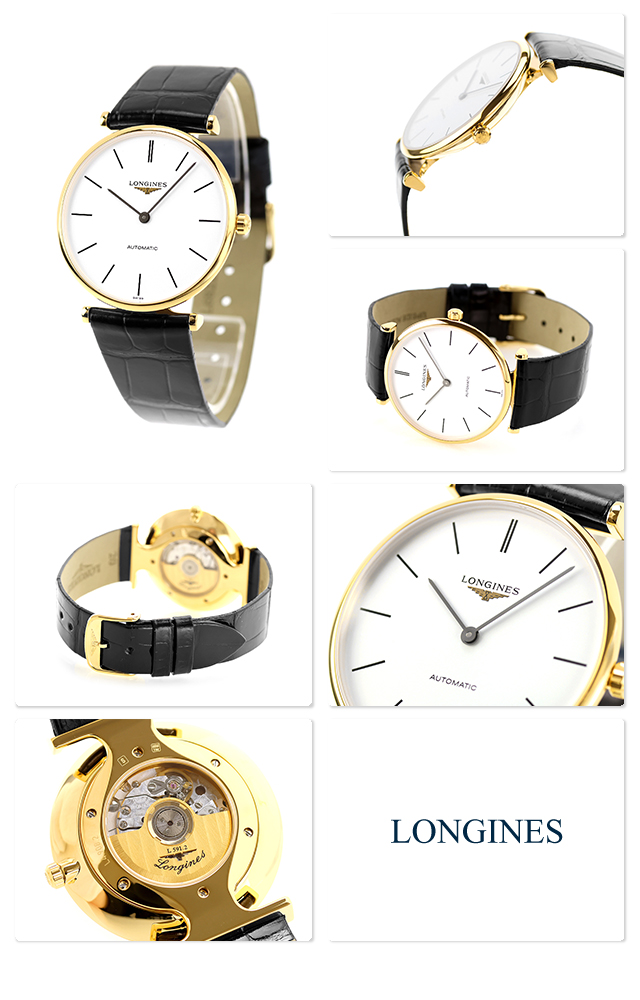 ロンジン グランクラシック 自動巻き 腕時計 ブランド メンズ LONGINES L4.908.2.12.2 アナログ ホワイト ブラック 黒 スイス製 おしゃれ 防水 プレゼント 男性 実用的