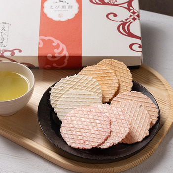 白えび、伊勢えび、甘えび、桜えびの4種類の煎餅が入ったギフトです。