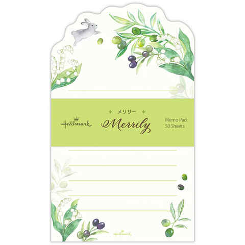 ダイカットメモパッド Merrily メリリー なかにしいずみ グリーン 50枚 すずらん うさぎ ボタニカル ナチュラル 春夏 送料無料
