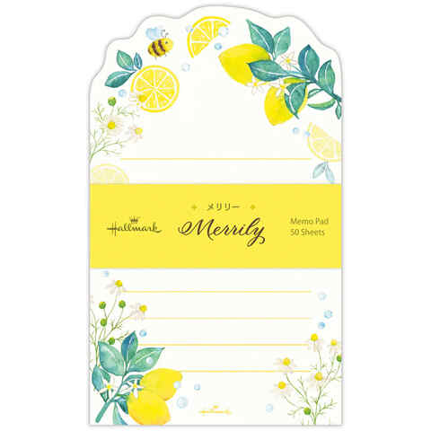ストア内の商品は全品送料無料です。人気の手描きクリエイター「中西 泉 (なかにしいずみ)」さん美しいにじみの水彩で描かれた草花と果実が爽やかな心躍る「Merrily (メリリー)」コレクション♪色彩心理学に基づいて、プラスの印象を持たせた「ダイカットメモパッド」です。レモン・カモミール・ハチがモチーフの「イエロー」。元気さや明るさのイメージで、活動的な気持ちにさせるデザインです。春〜初夏にかけてのコミュニケーションに彩を添えてみませんか?【サイズ】約150×90mm【材 質】紙【入 数】50枚【仕 様】ダイカット、横罫入■メーカー: ホールマーク