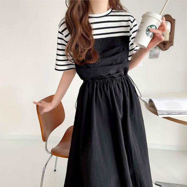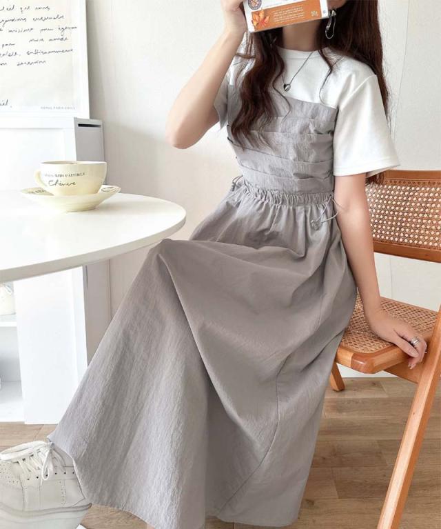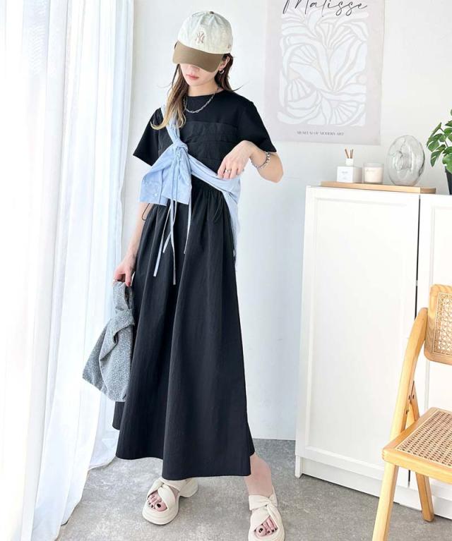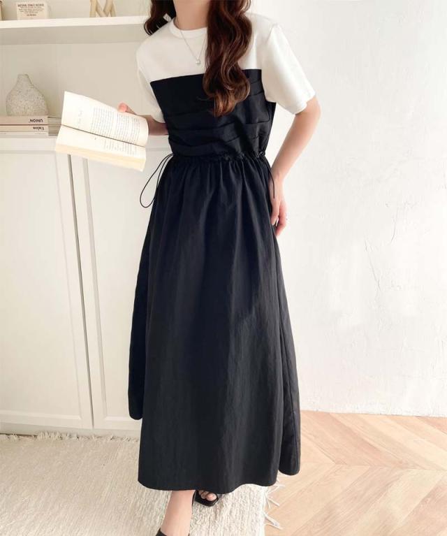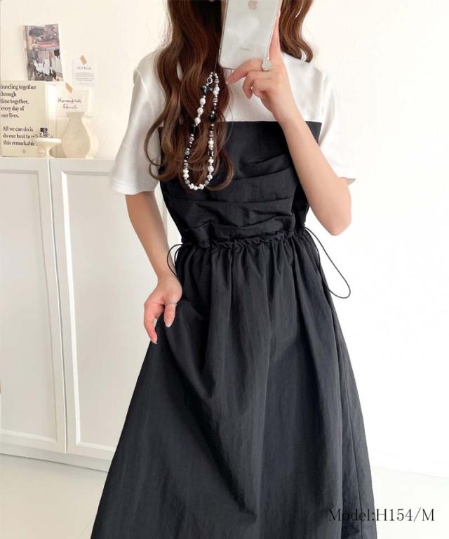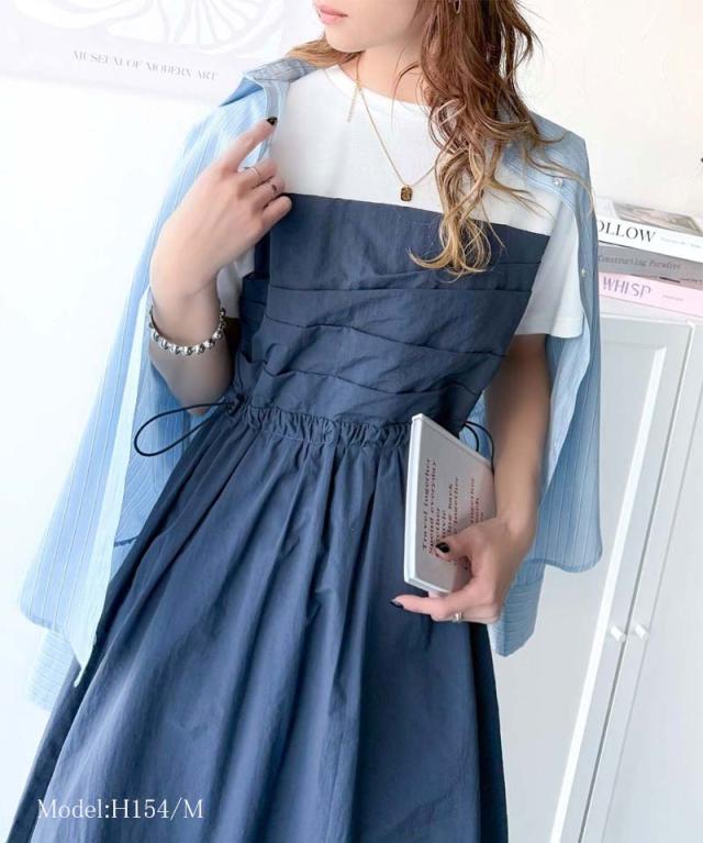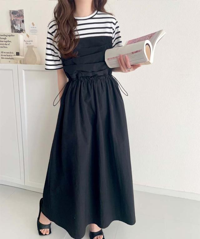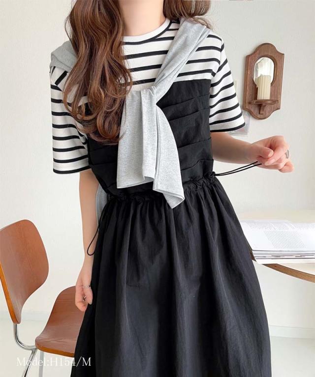 ★1枚で主役級。脇ドロストビスチェドッキングワンピース(無地&ボーダー柄)★