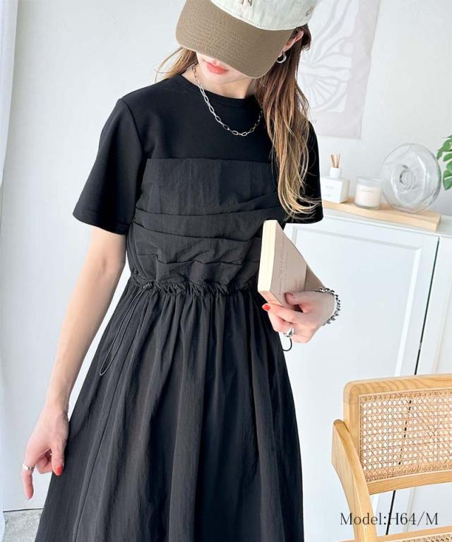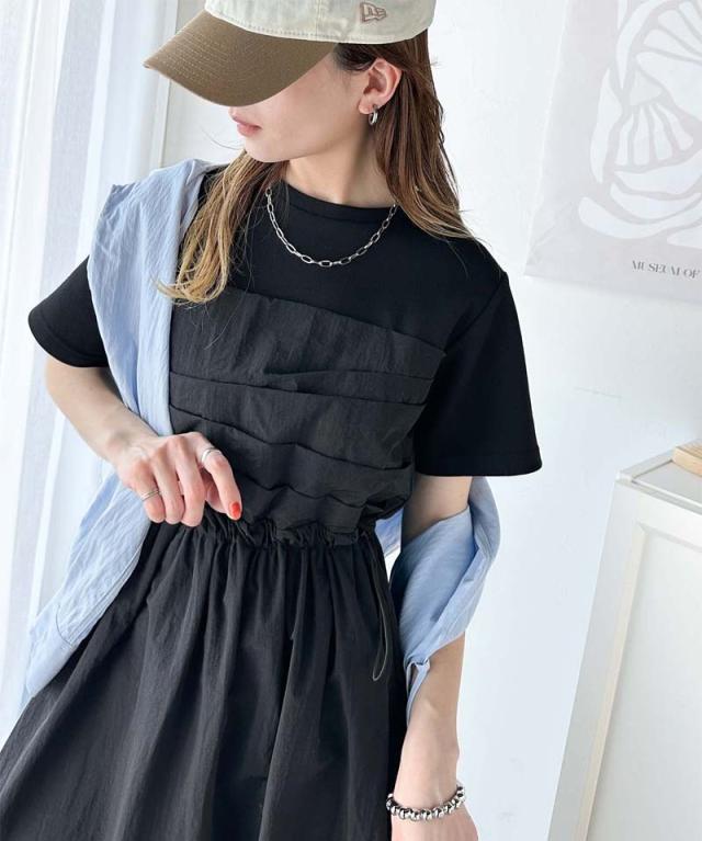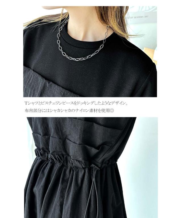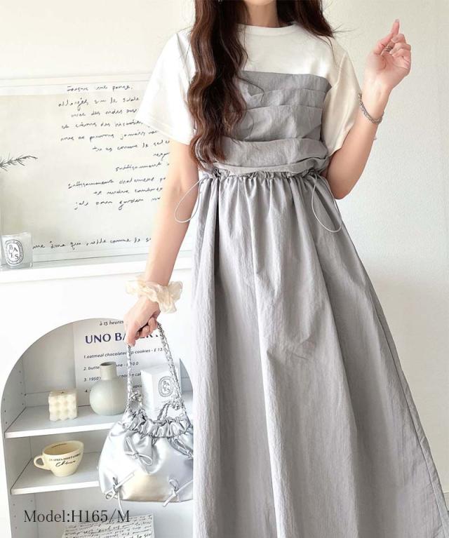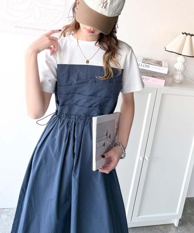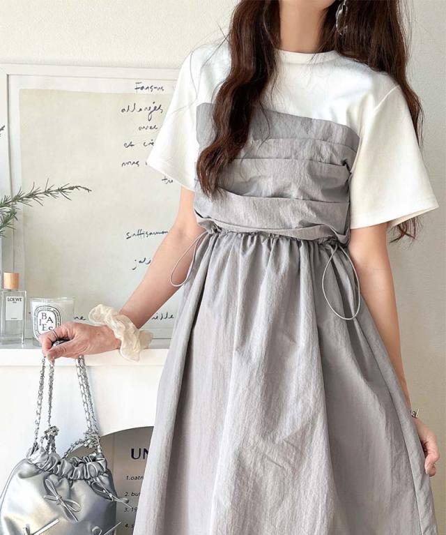 クラシカルエルフ冬新作 ワンピース/ドレス ワンピース レディース 半袖 ビスチェ 風 ドッキング デザイン 脇 ドロスト スポーティー カジュアル 無地 ボーダー フリル 大きいサイズ 2025SS ce1260411