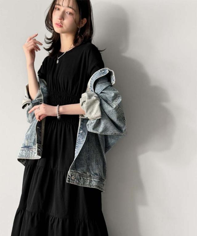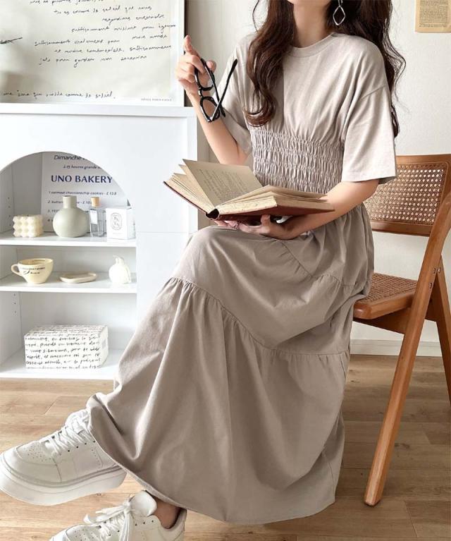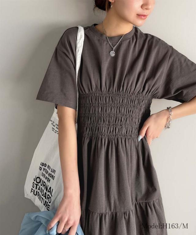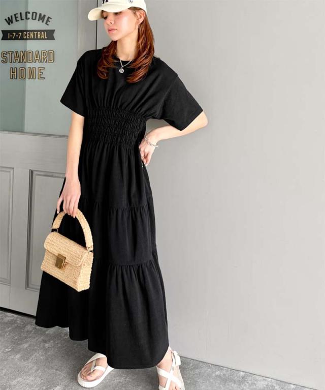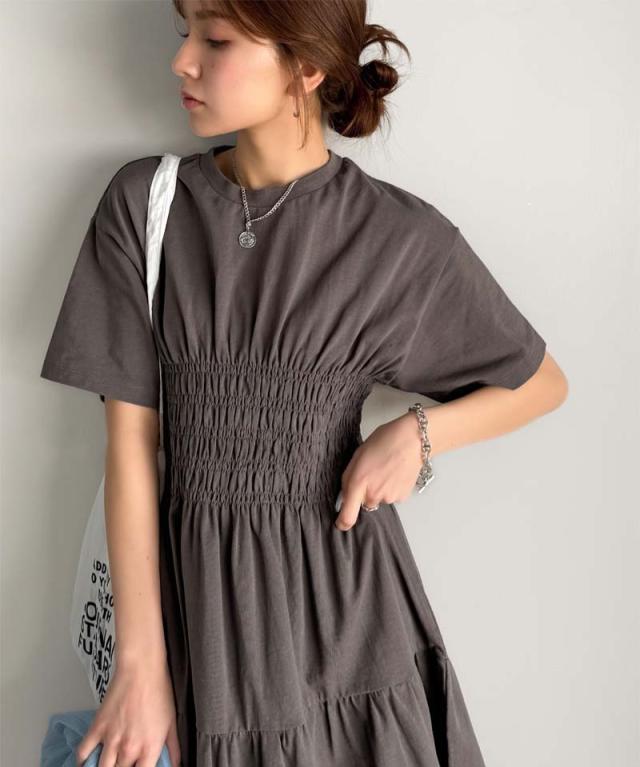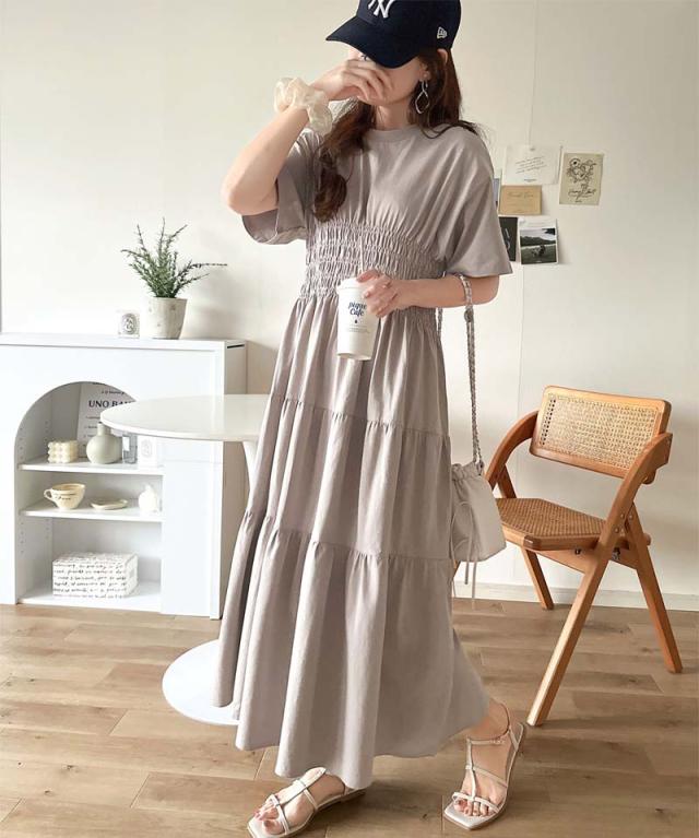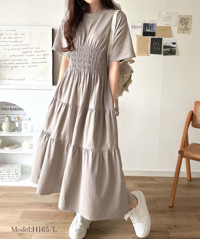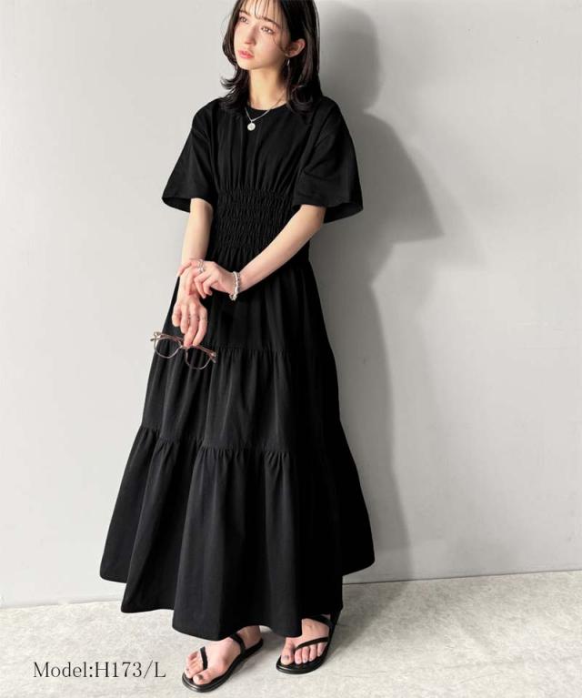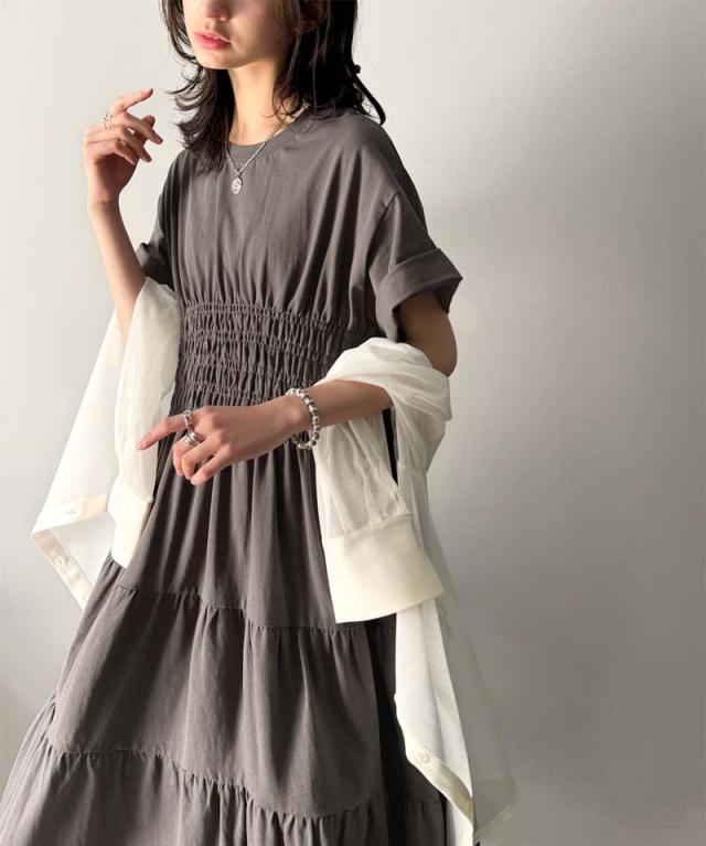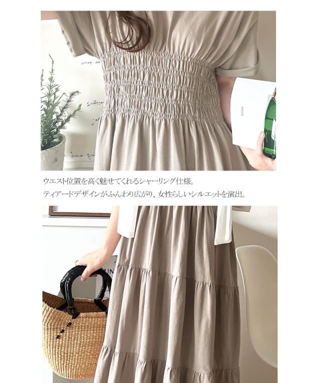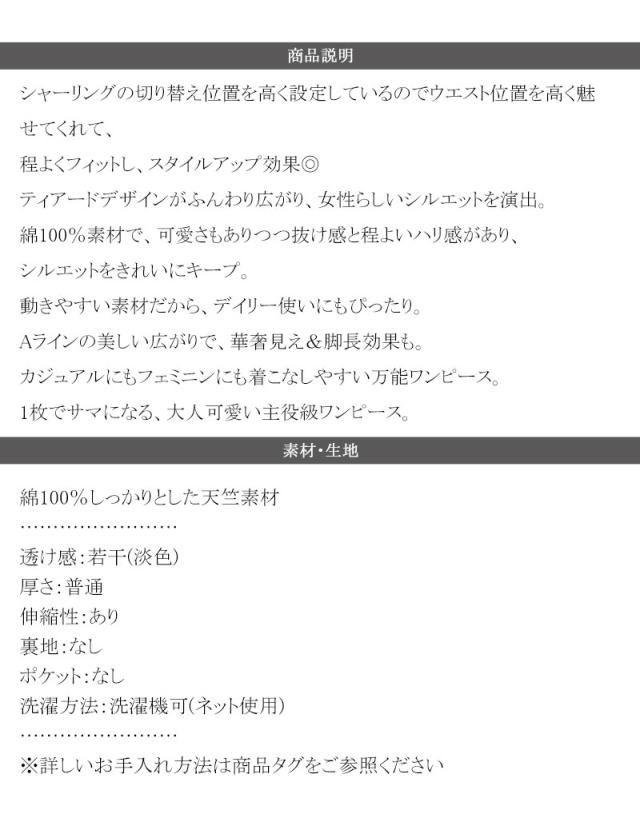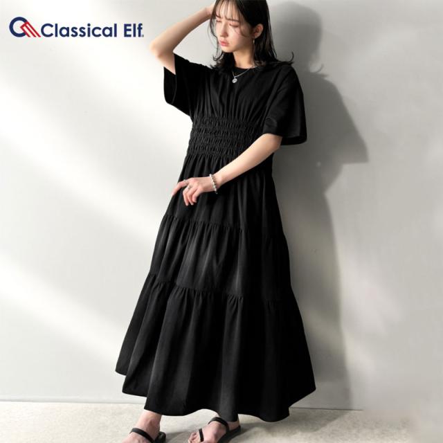 クラシカルエルフ冬新作 ワンピース/ドレス ワンピース レディース 綿100% 半袖 Aライン ティアード デザイン シャーリング カジュアル フェミニン 無地 ワンポイント 大きいサイズ 2025SS ce1050299