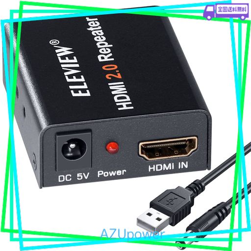 ELEVIEW HDMI 2.0 リピーター HDMIケーブルを延長/中継アダプター HDCP2.2 18GBPS 4K(60HZ)/30M 1080P(60HZ)/60Mまで延長可能 HDMIブースター 信号増幅器 USB外部給電可 EHD-612N