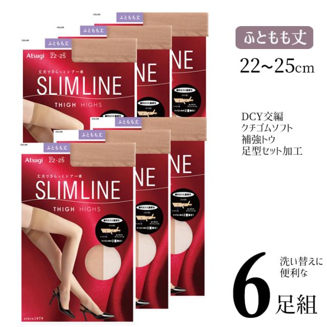 太もも丈ストッキング アツギ New スリムライン ふともも丈 FT5500 6足組 送料無料 パンスト 太もも オーバーニー ストッキング まとめ買い 6足 補強トウ つま先丈夫 atsugi slimline(06700)