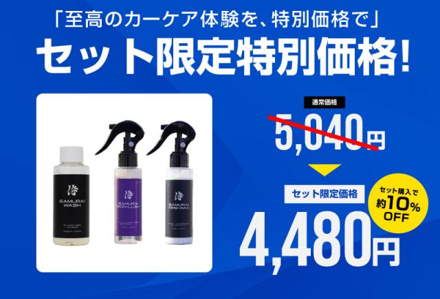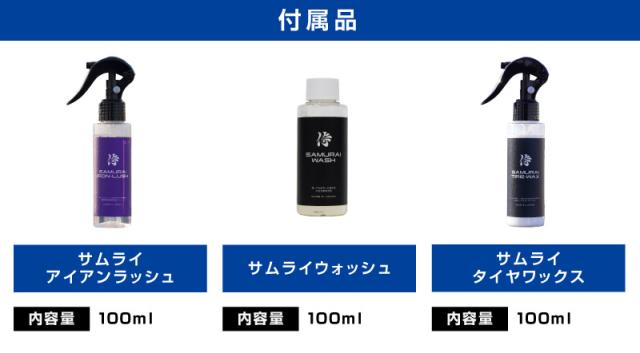 【セット割】サムライウォッシュ濃密泡カーシャンプー&サムライアイアンラッシュ 鉄粉クリーナー&サムライタイヤワックス 100ml