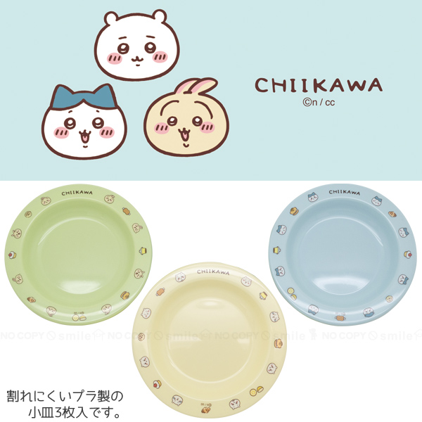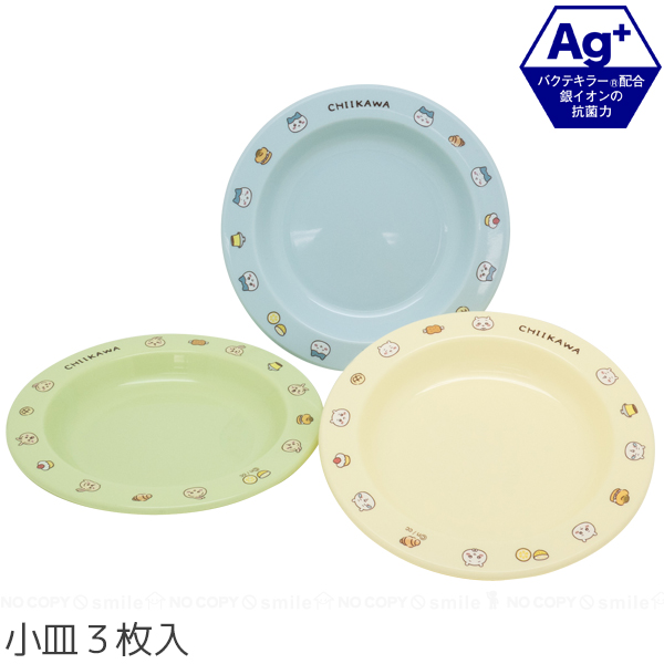ちいかわ 抗菌 小皿3枚入 /【ネコポス送料無料】/ キャラクター 小皿 皿 食器 小さめ ミニサイズ 子ども 子供用 こども 丸皿 プレート 取り皿 プラスチック 軽量 割れにくい 食洗機対応 電子レンジ対応 銀抗菌 おやつ かわいい 日本製 オーエスケー [OSK]