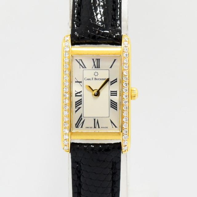 カール F.ブヘラ 中古 レディース CARL F.BUCHERER クォーツ ダイヤモンド K18 イエローゴールド 新品社外レザー 軽仕上げ