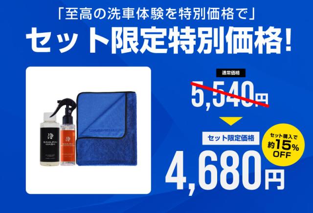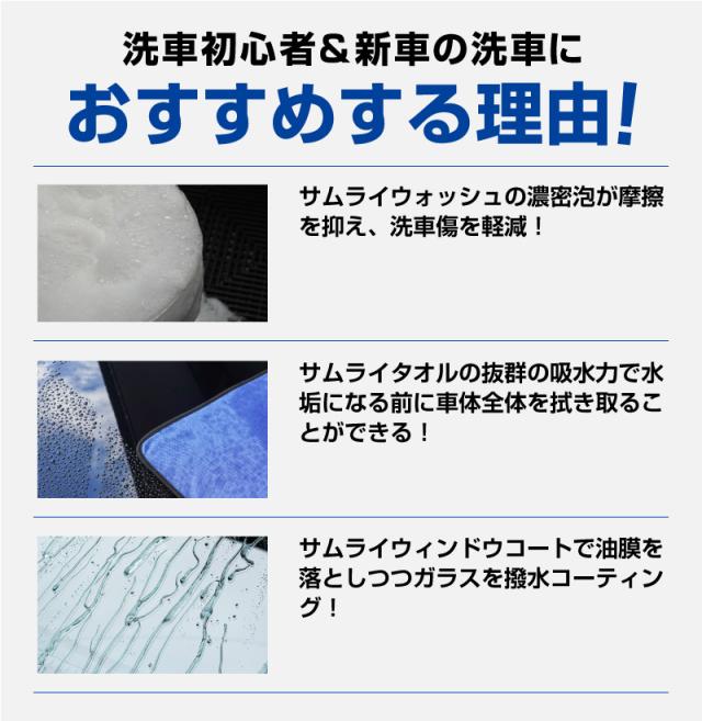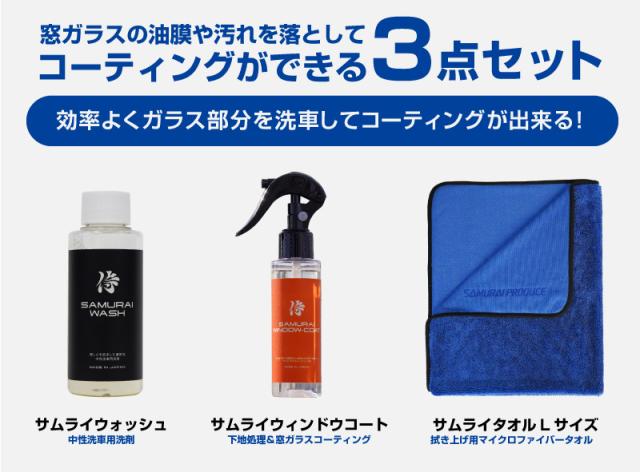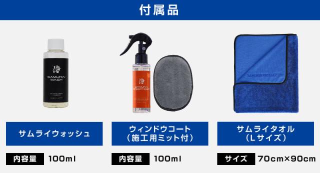 【セット割】サムライウォッシュ 濃密泡カーシャンプー&サムライウィンドウコート 100ml&超吸水サムライタオル Lサイズ 70cm×90cm