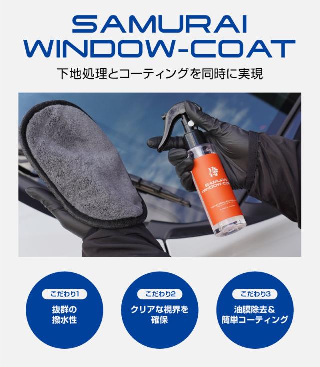 サムライウィンドウコートは、雨の日の運転を快適にする超撥水ガラスコーティング剤です。