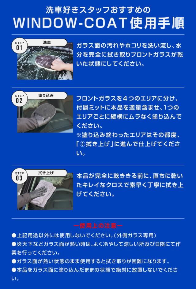 ・炎天下などガラス面が熱い時はよく冷やして涼しい所及び日陰にて作業を行う(色ムラができ拭き取りが困難になる恐れあり)