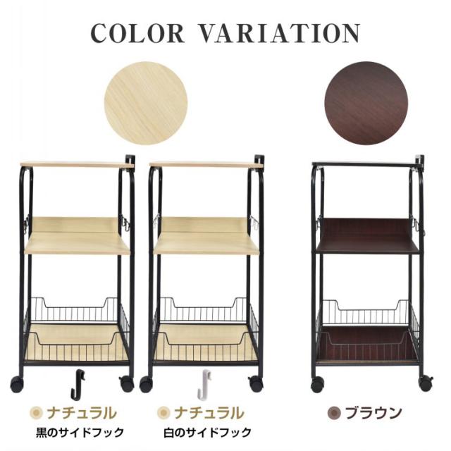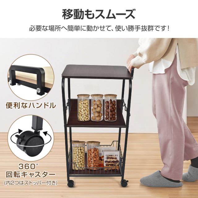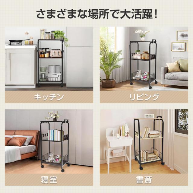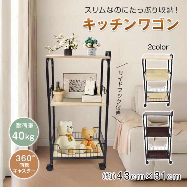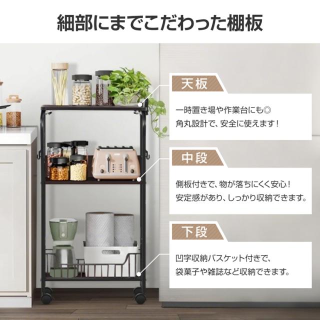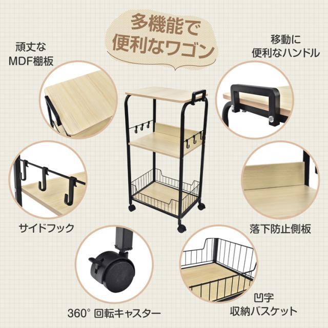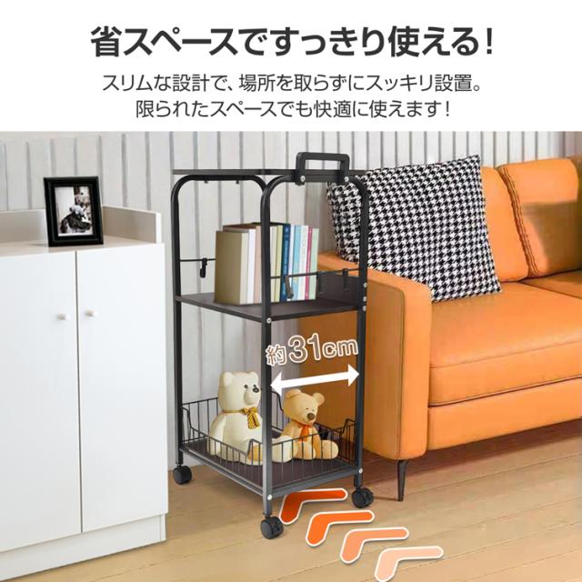 新生活 キッチンワゴン キャスター付き 3段 収納 ラック スリム ワゴン キッチン カウンター ハンドル 取っ手 サイドフック 360°回転 キャスター バスケットトローリー インテリア 隙間収納 収納棚 すき間 隙間 カート 組立簡単 おしゃれ 新生活 in026