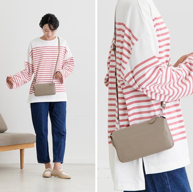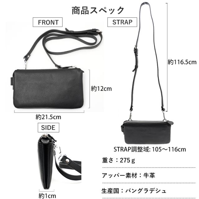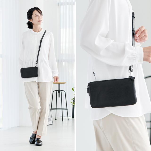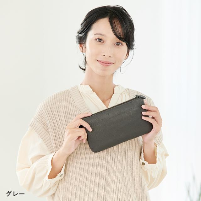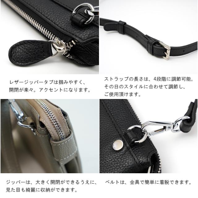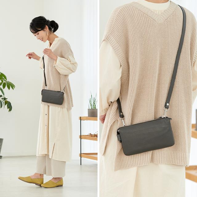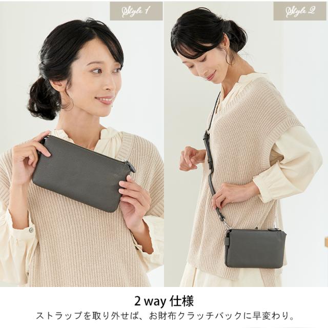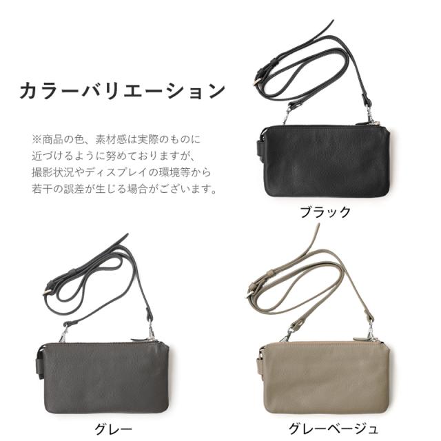 本革 お財布ショルダー ショルダーバッグ 軽量 コンパクト シュリンクレザー 長財布 レディース ユニセックス 20 30 40 50 代 レザー ブラック グレー グレーベージュ 天然皮革 お出かけ オフィス カジュアル 2way 送料無料