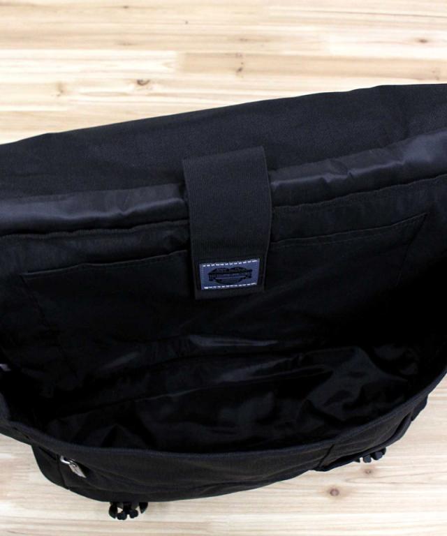 フラップを開くと小物の収納に便利なファスナーポケット&オープンポケットあり。