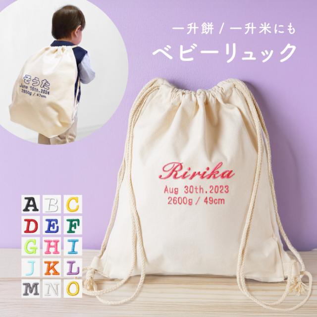 名入れ無料名入れ 刺繍 ベビー リュック ナップサック 袋 一升餅 一升米 1歳 カラフル 出産祝い 出産祝いプレゼント 着替え入れ おむつポーチ 小物入れ 体操着 入れ物 袋 綿 キャンバス生地 内祝い イベント