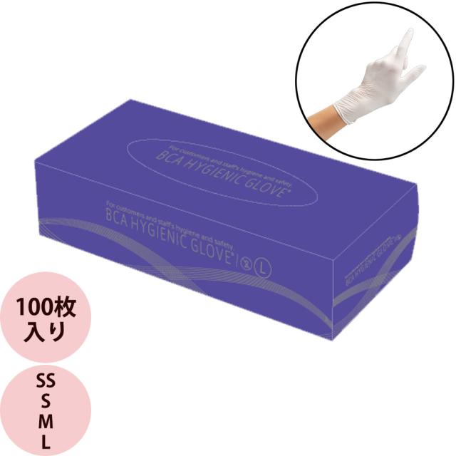 bca ビーシーエー ハイジェニックグローブ SS・S・M・L ホワイト 100枚入 ゴム手袋 ヘアカラー ヘアカット 散髪 美容室 プロ用 業務用