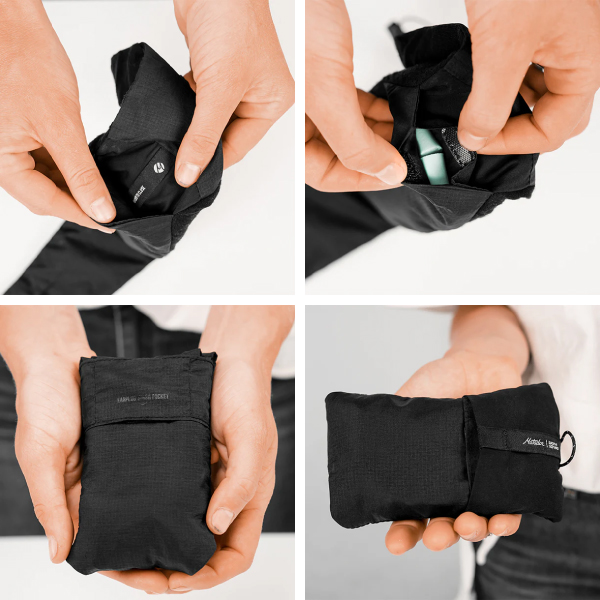 使用しない時は内蔵ポケットに折りたたむことができ、耳栓を収納できる専用ポケットが付いています。