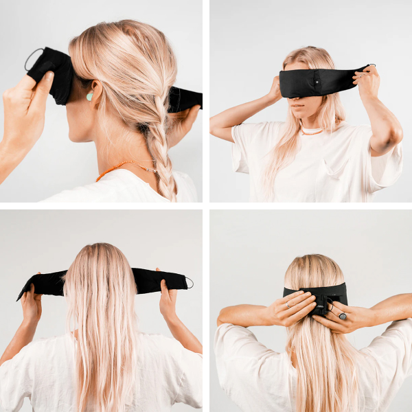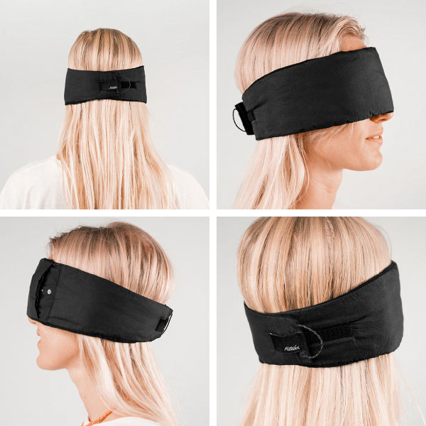 旅行先や移動中になかなか快眠を得られない方に朗報です。このスリープマスクは背面の面ファスナーにより、長さやフィット感の調節が簡単に行えます。