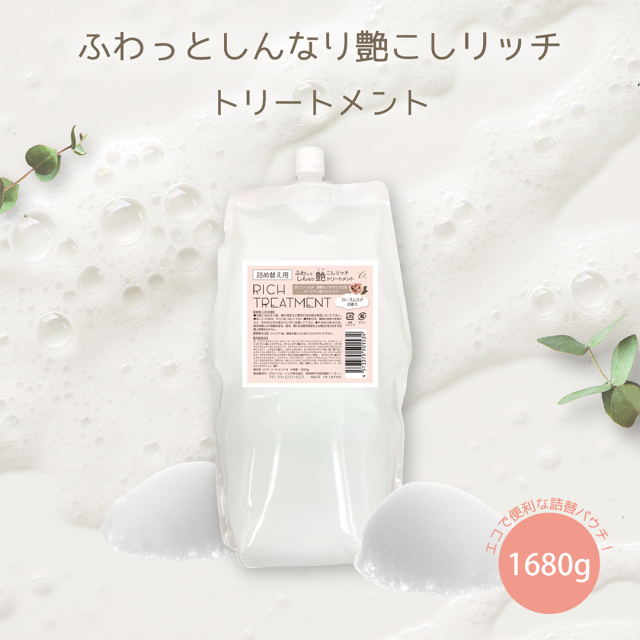【初回限定価格】【ふわっと しんなり 艶こし リッチ トリートメント】1680g/美容室 サロン 専売/すっぴん モテ髪/ローズ ムスクの香り/ふんわり さらさら ダメージケア/ヒアルロン酸 植物エキス 加水分解ケラチン 配合