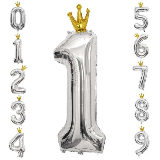 GRESATEK バルーン 数字1 風船 誕生日 40インチ 大きい ナンバー バースデーバルーン 王冠付き クラウン 飾り付け 結婚式 パーティー 記