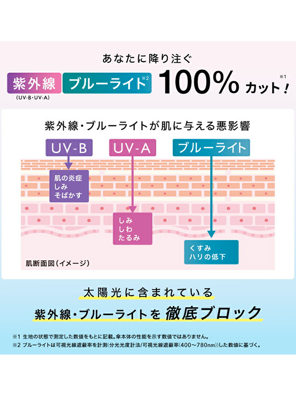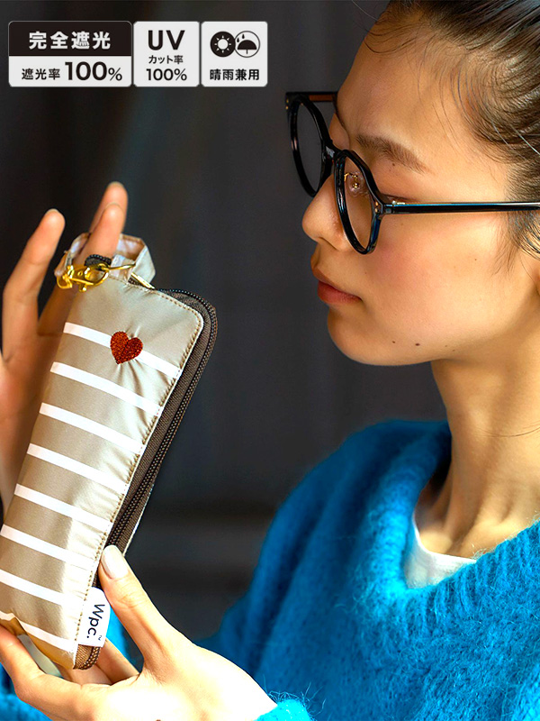 Wpc Blackout Heart Embroidery Border Mini Wpc 遮光 ハート 刺繍 ボーダー ミニ 【Wpc(ダブルピーシー)】 「新たな可能性を生み出す」をスローガンに2004年に誕生したドメスティックブランド。 様々な世代・ジャンルに合った方へ、雨の日だけでなく、天気によって変わる”ライフスタイリング”を提案していきます。 そして。ご愛用いただけるお客様の毎日が楽しくなる製品をお届けします。 ワンポイントのハート刺繍がさりげなく可愛い折りたたみ日傘。 コンパクトサイズなので、日々の携帯にもかさばらず持ち歩きにも便利。 収納ケースはL字型のファスナー形式なので、大きく開くことができ、スムーズに傘の出し入れができます。 また、ひも部分には金具が付いているため、バッグに取り付けて持ち運ぶこともできて便利です。 【完全遮光日傘】 ■遮光率・UVカット率・ブルーライトカット率100%、UPF50+ 全カラー遮光率・UVカット率・ブルーライトカット率100%、UPF50+を実現しました。 日焼けを防ぐために必要なUVカットと、お肌に悪影響を与えるブルーライトカットの性能を兼ね揃えた生地を使用しています。 また涼しく過ごすための遮熱性も優れているため、暑い夏の熱中症対策にも。 ■傘内側の黒コーティングが照り返された紫外線、ブルーライトを9割吸収 傘の内側で起こる光の反射を大幅に減らして肌にダメージを与える有害光線からお肌を守ります。 ※記載の遮光率・紫外線遮蔽(UVカット)率・ブルーライトカット率、UPF値は生地の状態での測定値です。 傘本体の性能を示す数値ではございません。 また、生地に施された刺繍・縫製などUV加工生地以外の部分もその限りではありません。 ※ブルーライトは可視光線遮蔽率を計測(分光光度計法/可視光線遮蔽率(400〜780nm))した数値、 可視光線吸収率を計測(分光分析/可視光線(400〜780nm)透過率・反射率より算出)した数値に基づく。 ※直接肌に照り返された光を吸収するものではありません。日焼け止め等、他のUVケア用品との併用をお勧めします。 【雨の日も使える日傘(晴雨兼用)】 この製品は日傘としてお使いいただくことを主としていますが、はっ水防水加工を施しているため雨傘としてもお使いいただけます。 ※激しい雨や長時間の雨傘としてのご使用は雨漏りや色落ちの原因となる可能性がございます。 またデザインの特性上、完全な防水はっ水加工が難しい場合があり、雨が染み込むことがありますのでご注意ください。 ≪開閉方法≫ 手開き(イージーオープン)仕様。ポキポキ折らずにスムーズに開閉できます。 ご使用になる前に製品に付属しているご使用上の注意をお読みください。 | ||||||||||
