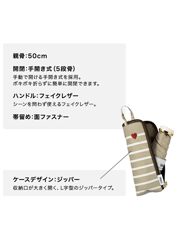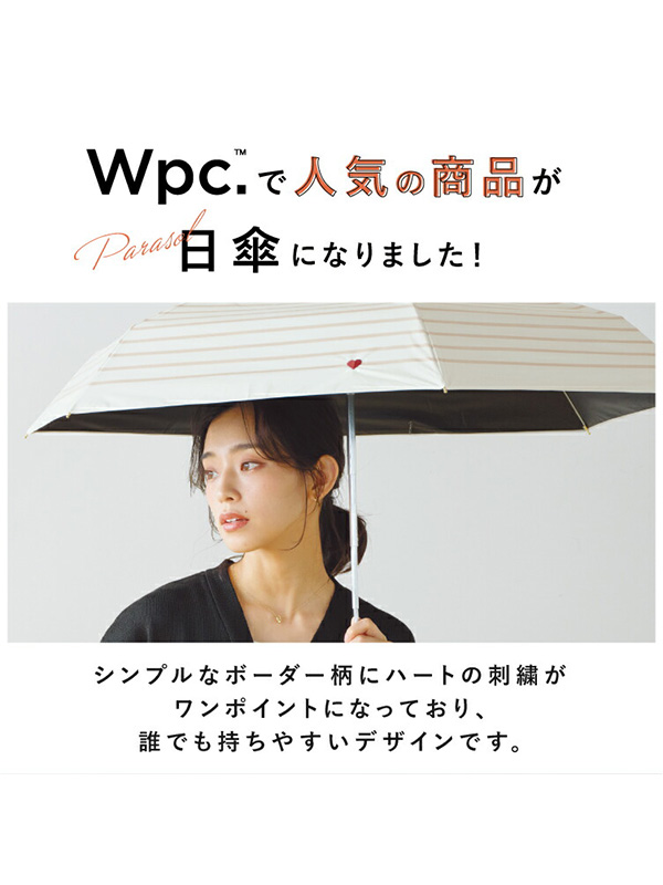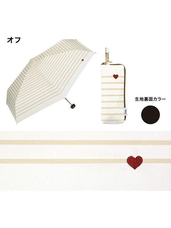 Wpc 日傘 折りたたみ 完全遮光 晴雨兼用 遮光 ハート刺繍 ボーダー ミニ 日傘 折りたたみ おしゃれ かわいい インスタ SNS コンパクト サイズ 801-15653-102