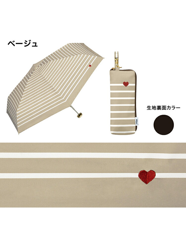 Wpc 遮光 ハート刺繍 ボーダー ミニ 日傘 ●送料無料 ワンポイントのハート刺繍がさりげなく可愛い折りたたみ日傘!