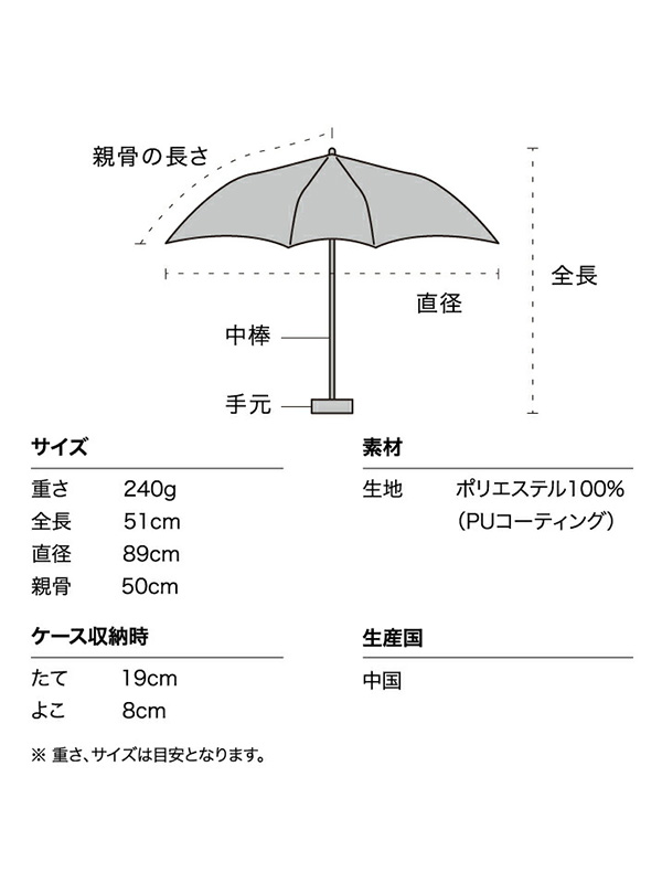 サイズ(cm)/全長/直径/親骨/重量(g)