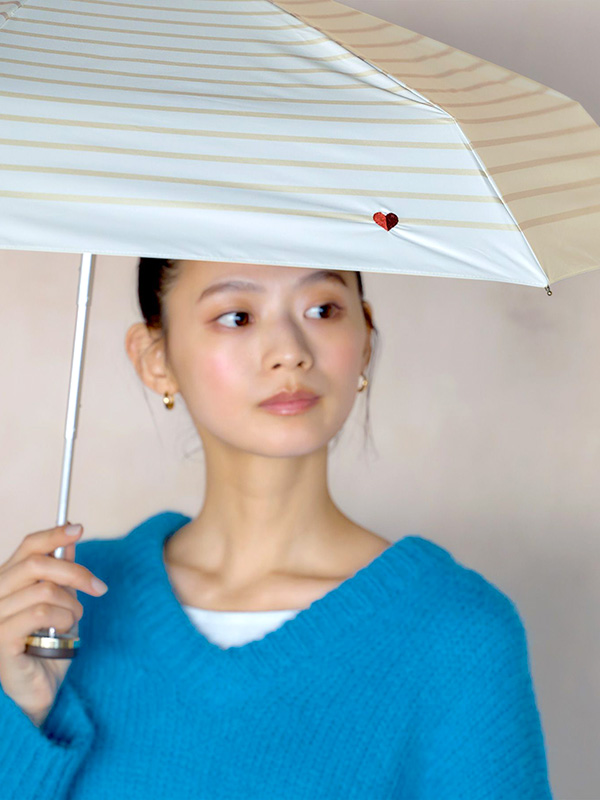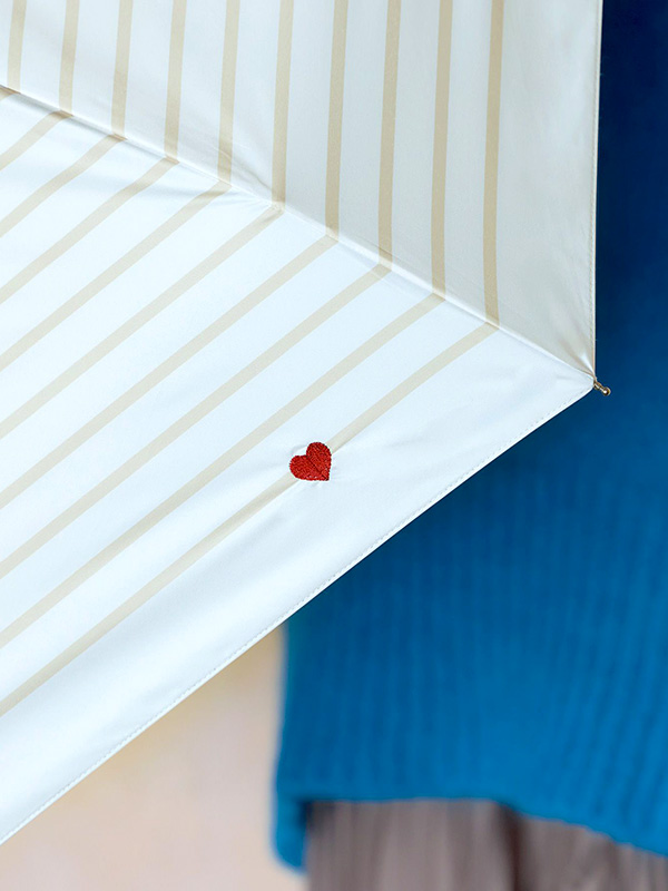 ワンポイントのハート刺繍がさりげなく可愛い折りたたみ日傘。
