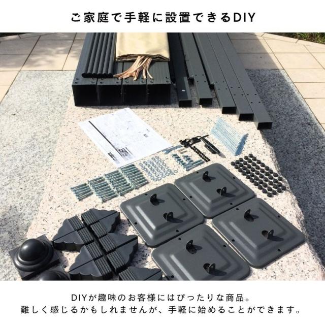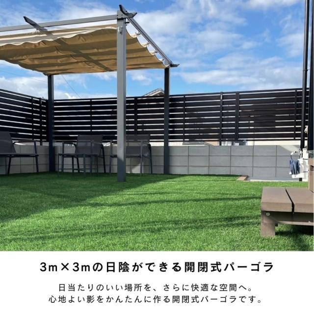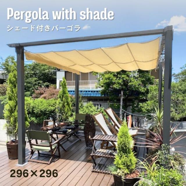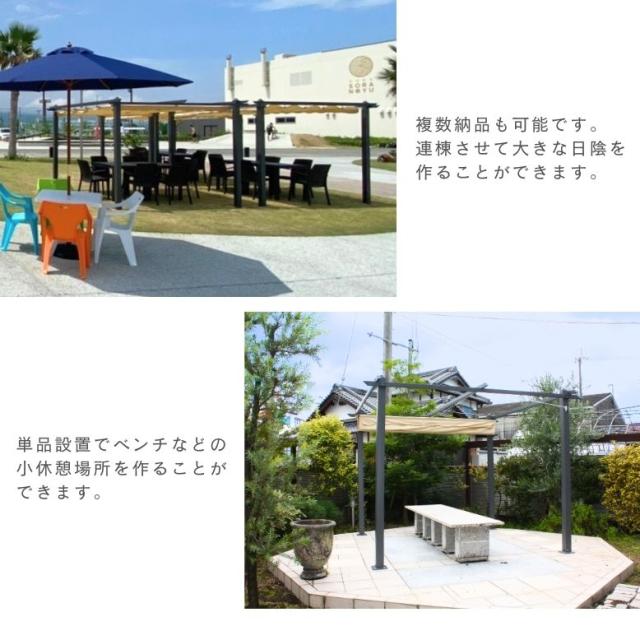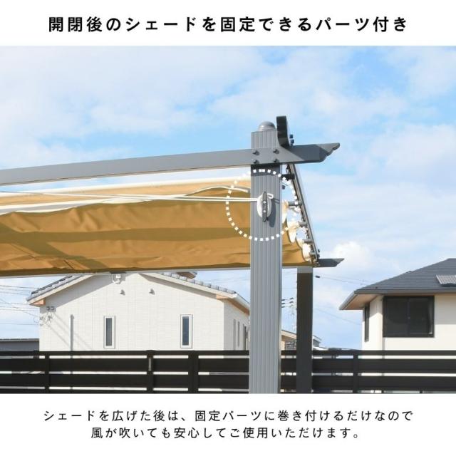 シェード 日よけ パーゴラ ベージュ ロープ開閉式 テラス ガゼボ ガーデン サンシェード 日除け オーニング グランピング BBQ 休憩所 ビーチ シェード付パーゴラ【大型宅配便】